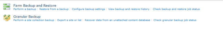 - In Central Administration, on the Home page, click Backup and Restore on the left hand menu.