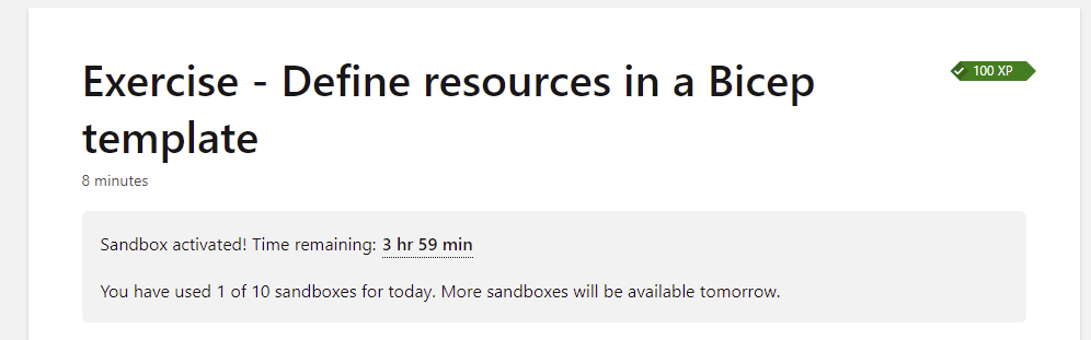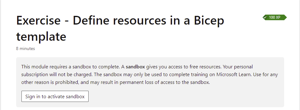 Microsoft provides a ‘free’ sandbox account for use on MS Learn courses