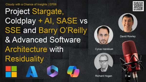 In the latest instalment of Cloudy With a Chance of Insights, we discuss Project Stargate, what happens when you combine AI and Coldplay, and Cyrus Irandoust & David Rowley discuss Residuality Theory in architecture, and SASE vs SSE. YouTube; https://youtu.be/rrrc2edRKug?si=BHslVyUBAGrqQoF8Spotify: https://open.spotify.com/episode/1BAUy3lH5rilCZ18bWupjk?si=kx_1w6IgTPu6eNTJf8C32gApple Podcast: https://podcasts.apple.com/gb/podcast/cloudy-with-a-chance-of-insights/id1783369178?i=1000690789575
