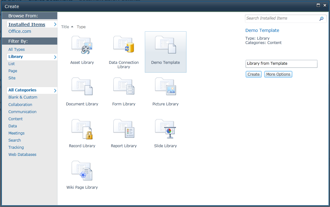 Figure 1.13 Document Library Templates – Create document library based on template.