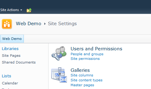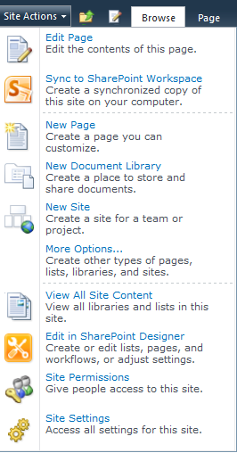 Figure 1.15 Site Columns – Site Actions Menu